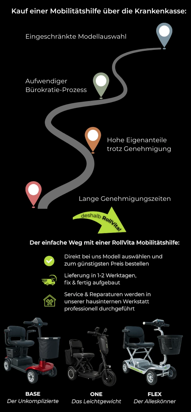 Mit den RollVita Elektromobilen bietet STREETBOOSTER eine der erfolgreichsten Lösungen für moderne Seniorenmobilität in Deutschland. Ob zum Einkaufen, für Arztbesuche oder einfach für mehr Unabhängigkeit im Alltag – die Elektromobile RollVita Base, RollVita und RollVita Flex kombinieren Komfort, Sicherheit und innovative Technik. STREETBOOSTER ist mit der Marke RollVita bereits heute sehr erfolgreich in diesem Segment der Mobilitätslösungen unterwegs und überzeugt durch Qualität, Service und ein durchdachtes Produktportfolio. Entdecken Sie, welches Modell am besten zu Ihrem Alltag passt – für mehr Selbstständigkeit und Lebensqualität.